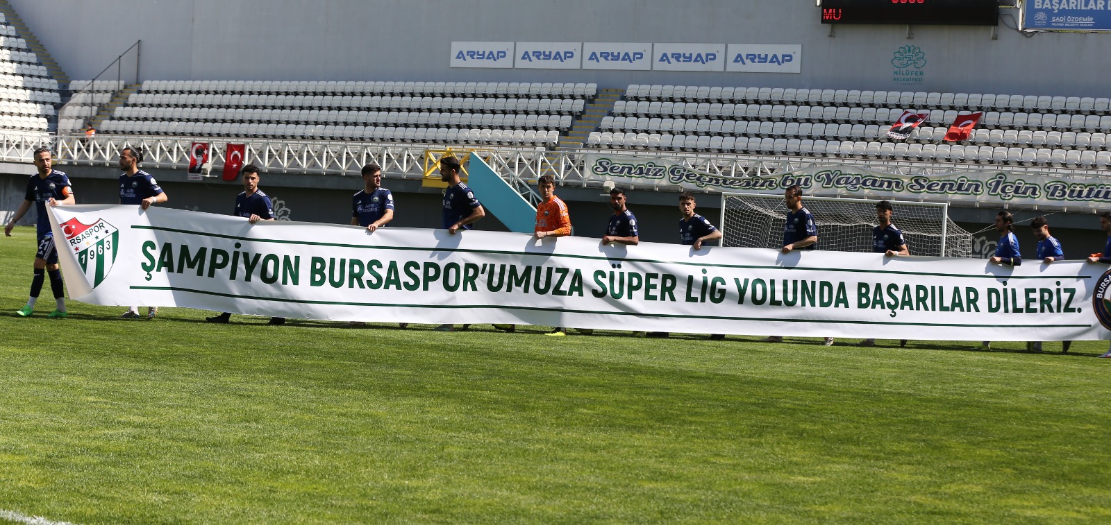 Bursa Nilüfer FK sahaya ‘Şampiyon Bursaspor’umuza Süper Lig Yolunda Başarılar Dileriz’ pankartıyla çıktı.