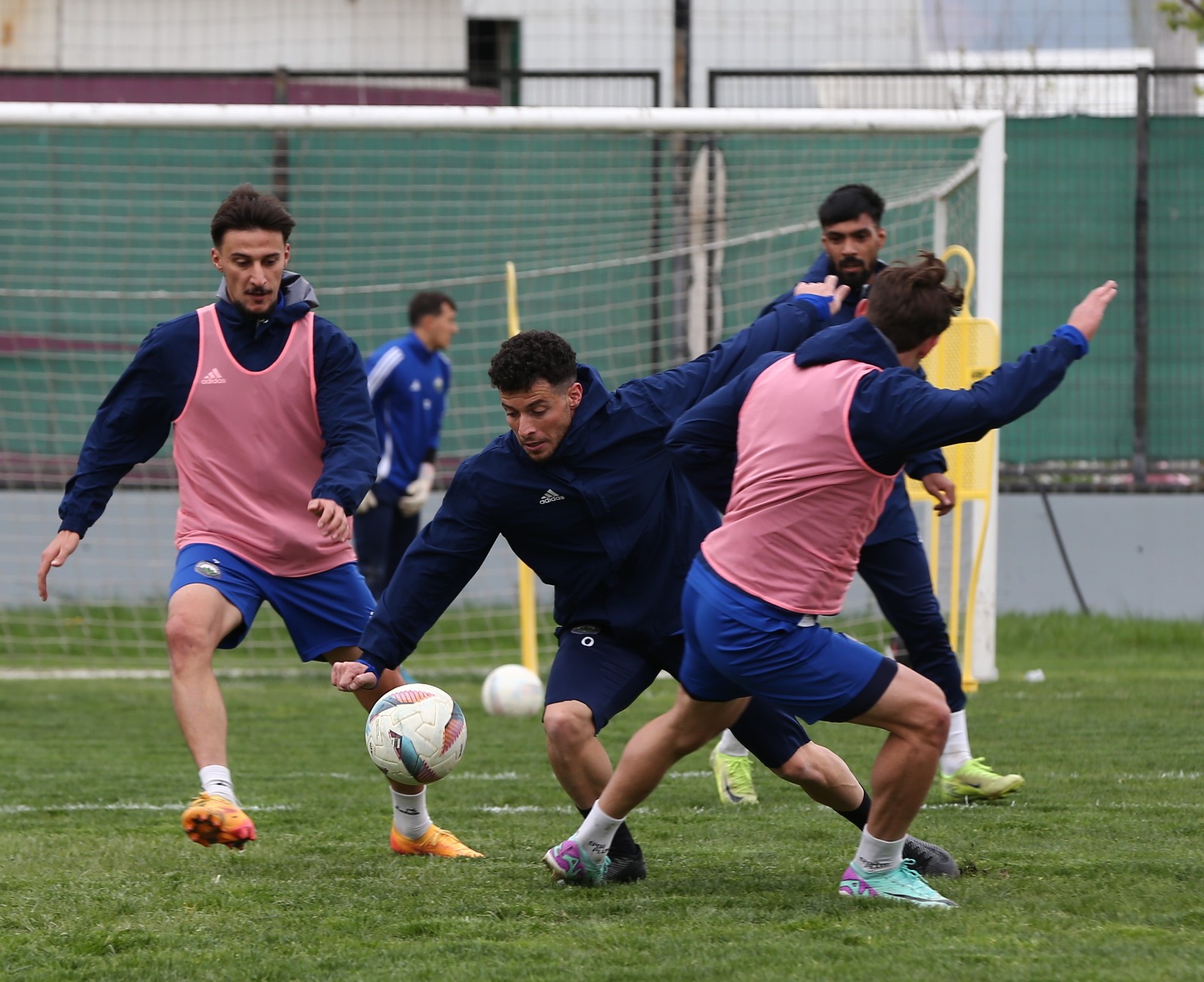 Antrenmanın son bölümünde mavi yeşilli futbolcular yarı sahada taktik içerikli bir çalışma gerçekleştirdi.