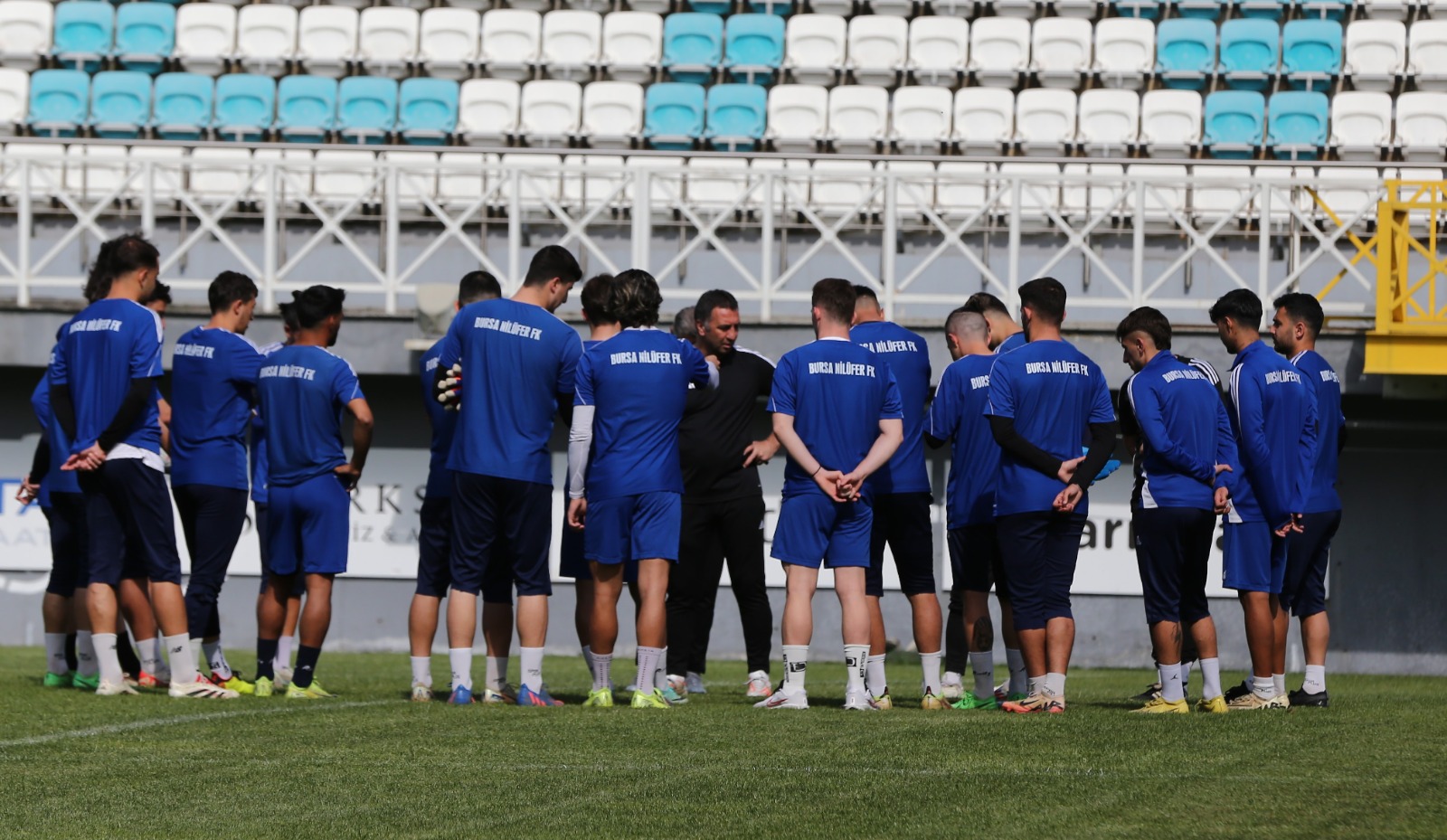 Mavi yeşilliler, teknik direktör Nedim Vatansever’in saha içinde yaptığı Zonguldakspor maçının değerlendirmesinin ardından futbolcularımız ısınma hareketleriyle çalışmaya başladı.